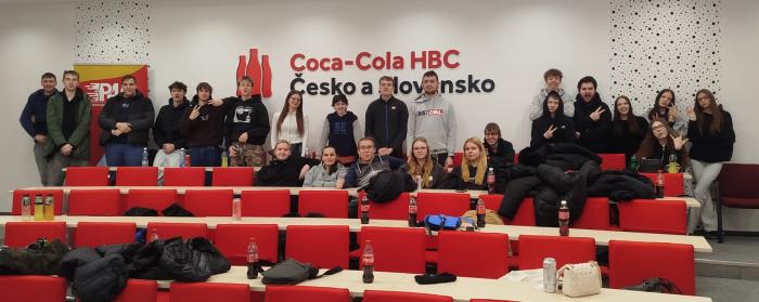 Dne 22.1.2026 žáci naší školy nahlédli pod víčko světoznámé značky – během exkurze ve výrobním závodě Coca Cola HBC v Praze mohli poznat, jak vznikají jejich oblíbené nápoje a jak funguje moderní výroba v praxi. Během výkladu se dozvěděli něco o historii značky, o tom, jak se nápoje vyvíjely v čase, a také o tom, jak firma přistupuje k recyklaci obalů a ochraně životního prostředí. V průběhu exkurze ochutnali různé druhy nápojů, které Coca-Cola produkuje.