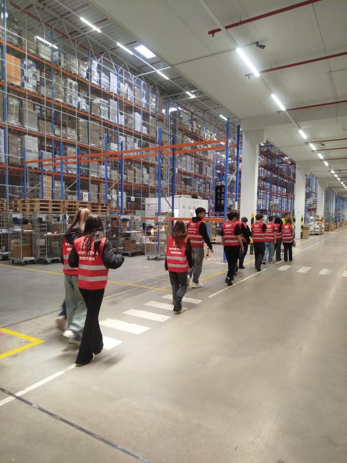 V rámci exkurze se potkali se svými spolužáky, kteří zde vykonávají odborný výcvik, a seznámili se se základy moderního skladování a technologiemi, které firma využívá pro zefektivnění procesů.