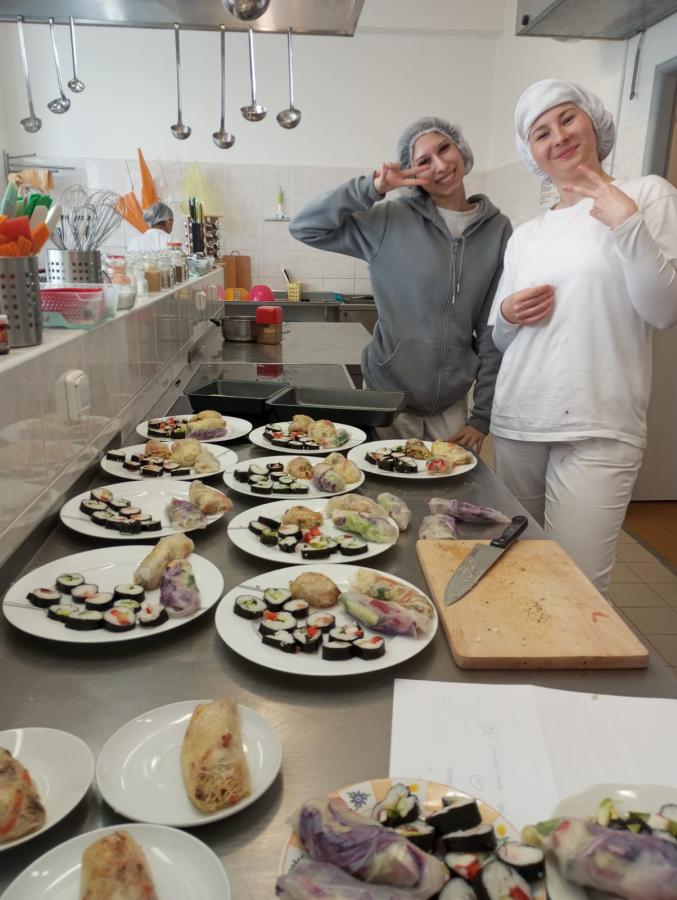 Žáci třídy 3EA pod vedením učitelek odborného výcviku Nešporové a Jakoubkové si vyzkoušeli přípravu pokrmů z různých koutů světa a poznat kulturu skrze chutě a vůně.