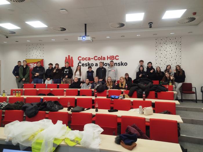 Dne 22.1.2026 žáci naší školy nahlédli pod víčko světoznámé značky – během exkurze ve výrobním závodě Coca Cola HBC v Praze mohli poznat, jak vznikají jejich oblíbené nápoje a jak funguje moderní výroba v praxi. Během výkladu se dozvěděli něco o historii značky, o tom, jak se nápoje vyvíjely v čase, a také o tom, jak firma přistupuje k recyklaci obalů a ochraně životního prostředí. V průběhu exkurze ochutnali různé druhy nápojů, které Coca-Cola produkuje.