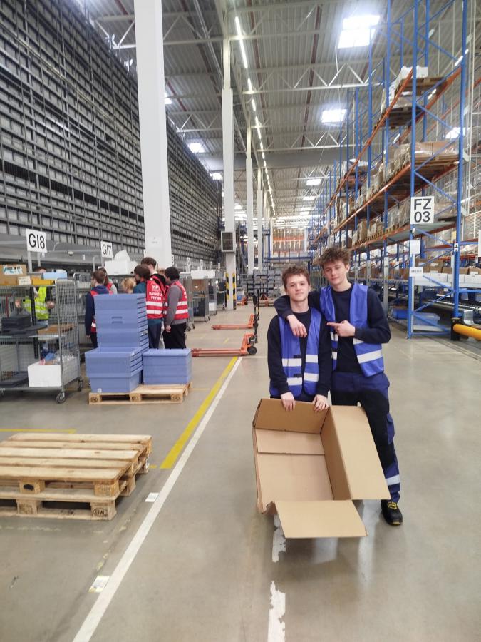 V rámci exkurze se potkali se svými spolužáky, kteří zde vykonávají odborný výcvik, a seznámili se se základy moderního skladování a technologiemi, které firma využívá pro zefektivnění procesů.